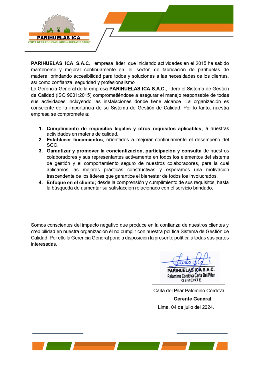 Nuestra empresa tiene la misión de crear fuente de trabajo con responsabilidad social.